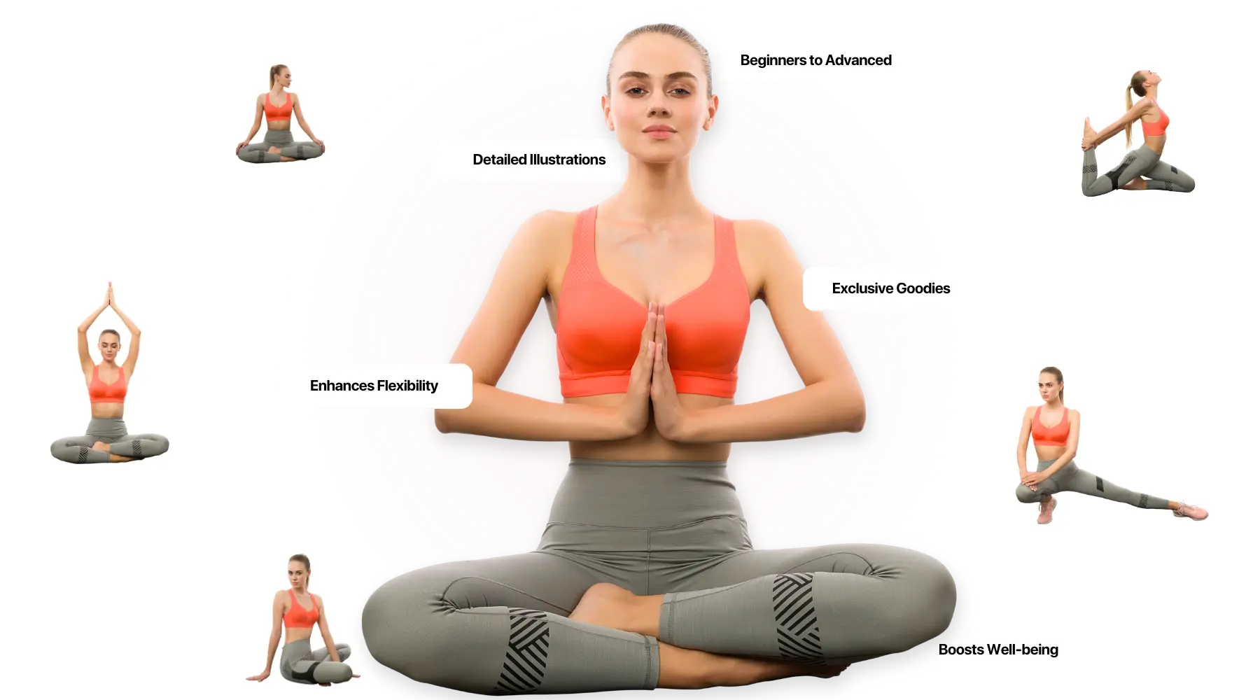 The Yoga Bundle includes over 2700 yoga asanas with detailed descriptions and illustrations, structured routines for all levels, bonus materials like meditation guides and breathing exercises, and lifetime updates.