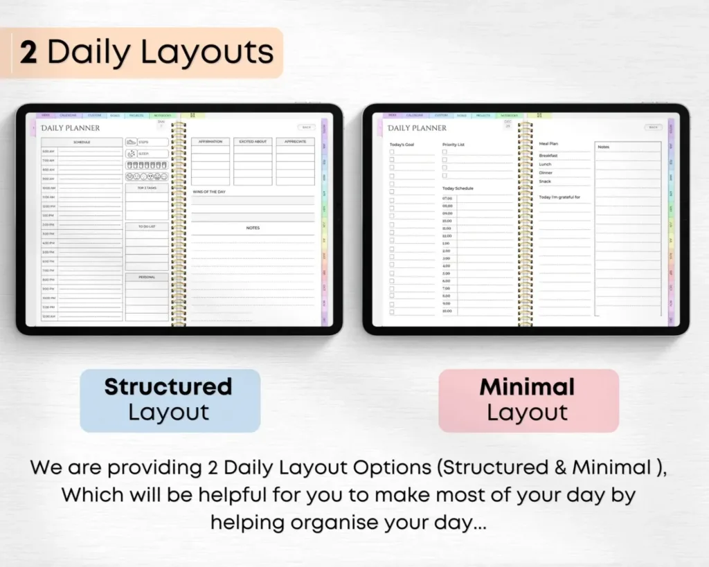 ✔ 2 Daily Planner Layout options (Structured & Minimal)
