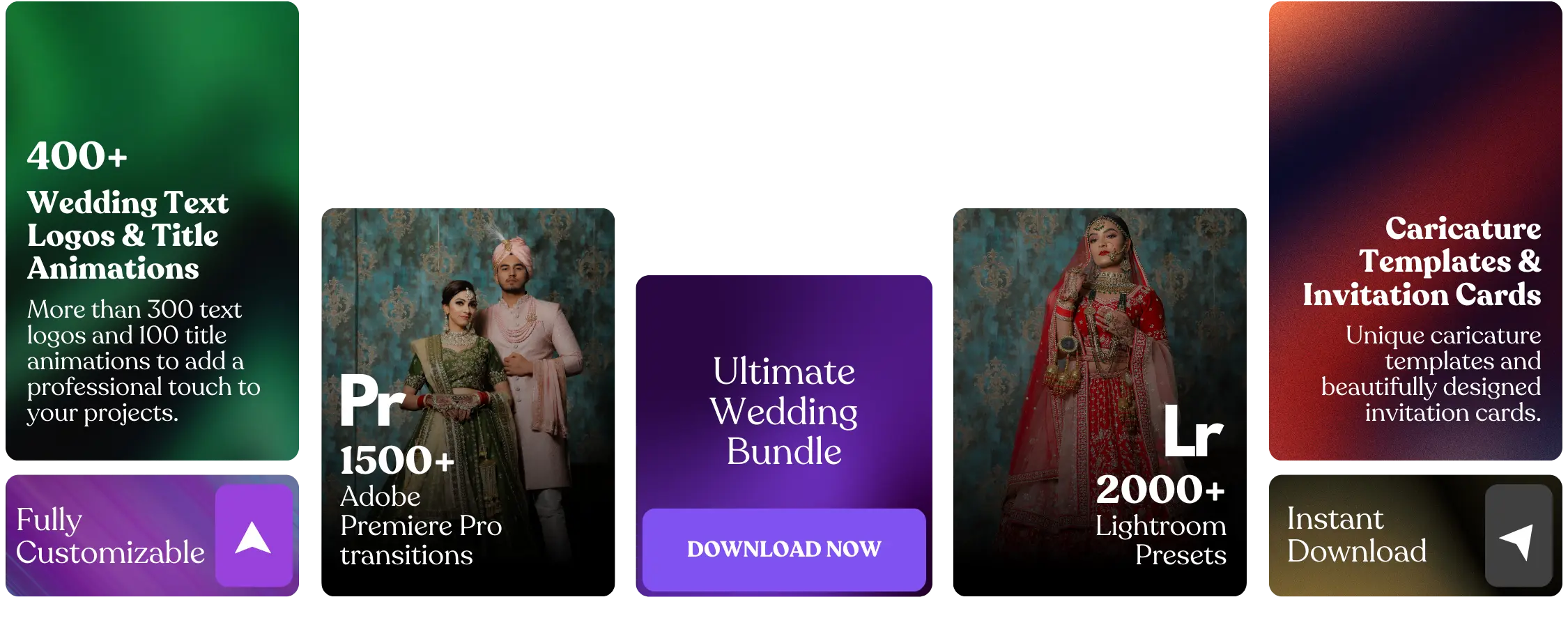 High-quality, customizable templates and presets tailored for wedding projects.